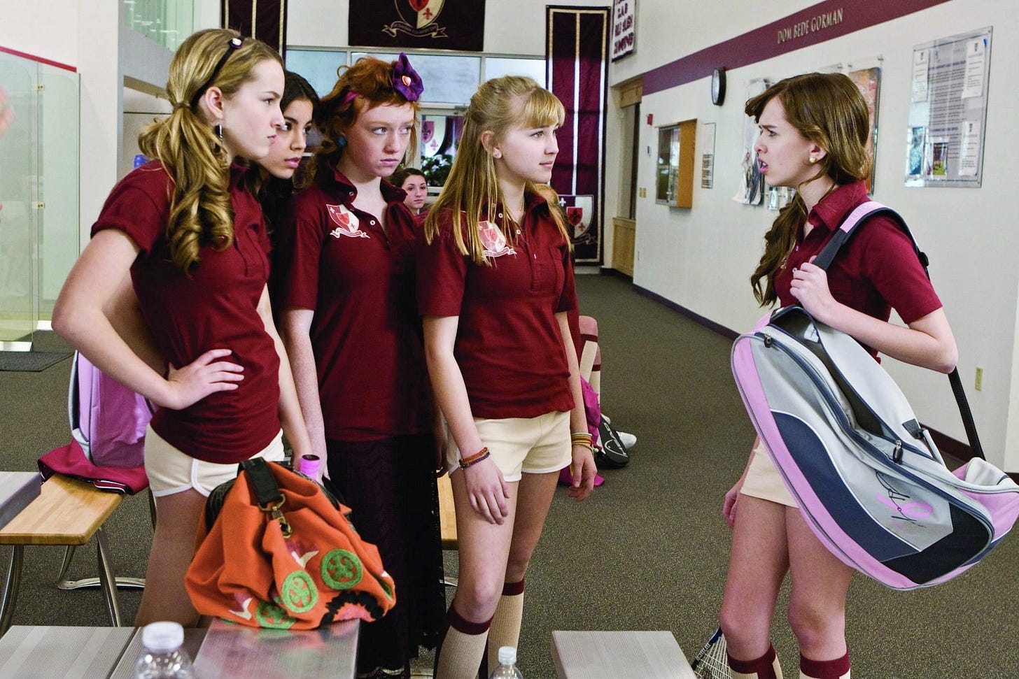 Claire hacks into Massie’s Instant Messenger and says evil things to the girls as Massie. “Massie” also starts a denim-over-tights trend at OCD, which BTW, was inspired by Lisi’s denim-over-tights phase at Emerson College. Within minutes, the Pretty Committee is convinced that Massie has betrayed their trust and that Claire is their real friend. Meanwhile, Claire is the one who is actually betraying everyone’s trust. Why? To get in with the Pretty Committee and to pay Massie back for being so nasty. And it worked. Claire was in, and Massie was more out than a pink pashmina.