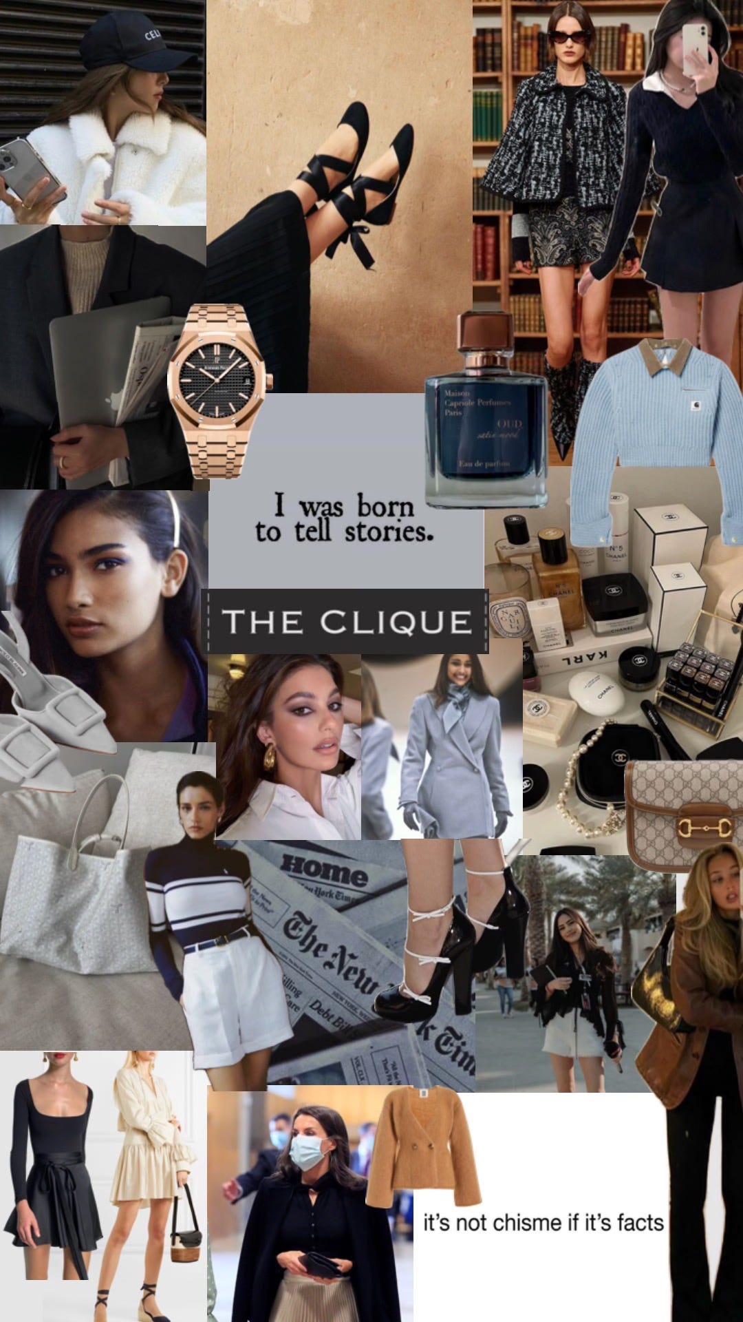 Featuring: Shoes by Spanish designers she got with her cousins (Manolo, Castañer and Loewe), her dad’s AP royal oak, and journalism inspo to manifest her dream internship.